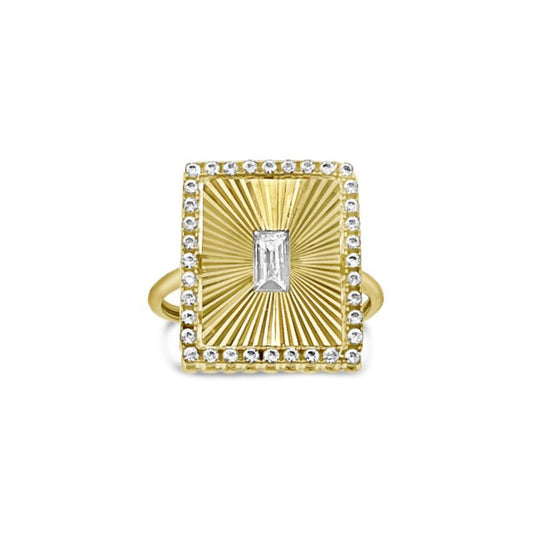 Square Engagement Ring 14k Yellow Gold Link Chain Band