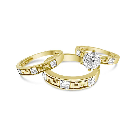 10k Yellow Gold Trio Wedding Ring Band Set His Her Bridal Engagement