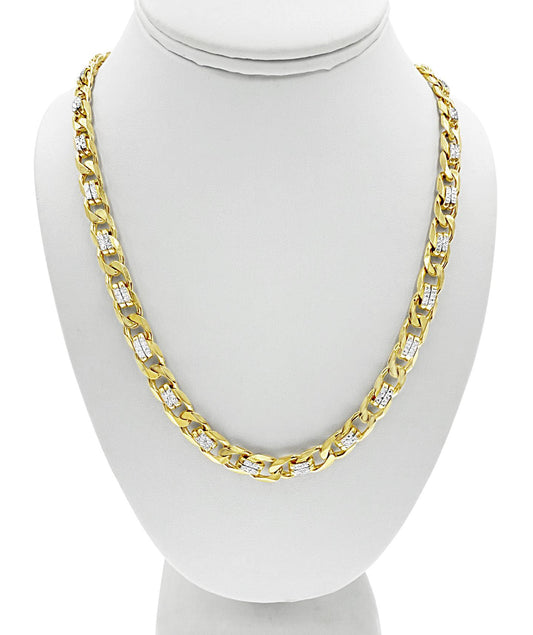 Solid 14k Yellow Gold Figaro Link Chain Pave 12mm Mens Necklace