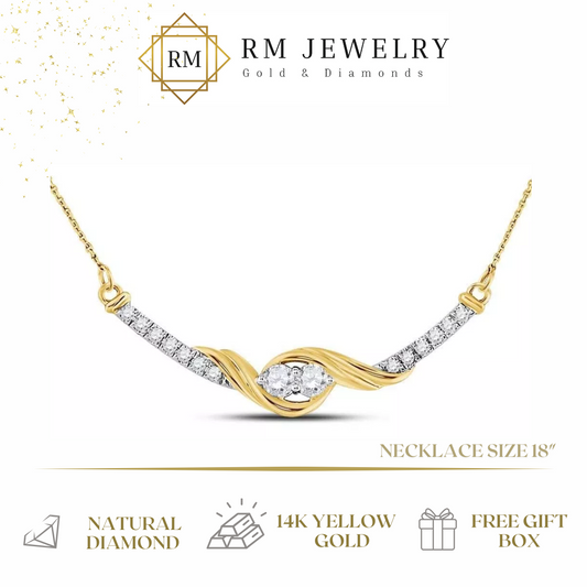 0.33 Ctw Round Diamond Bar Two stone Necklace 14k Yellow Gold Womens