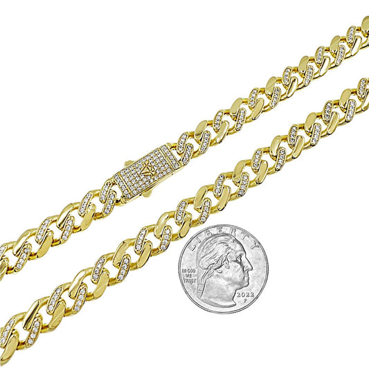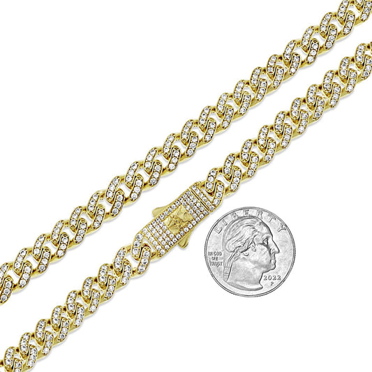 14k Yellow Gold Miami Cuban Monaco Link Chain Necklace 7mm Iced Out