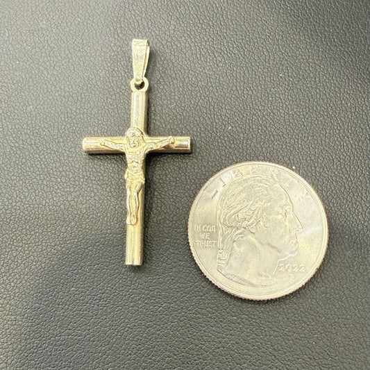 Cross Plain Pendant Charm 925 Sterling Silver Gold Plated 1.6"