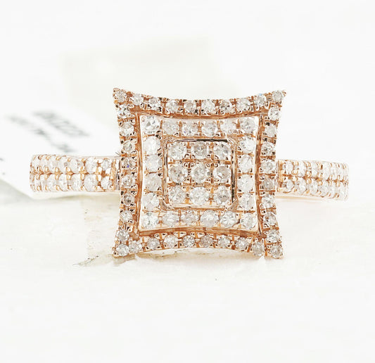 0.45 Ctw Diamond Square Cluster Engagement Promise Ring 10k Rose Gold