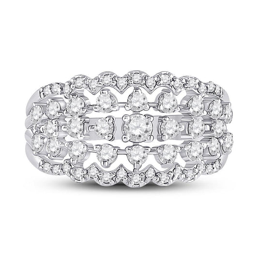 1 cttw Diamond Wedding Band Womens Triple Row Ring Band 14k White Gold