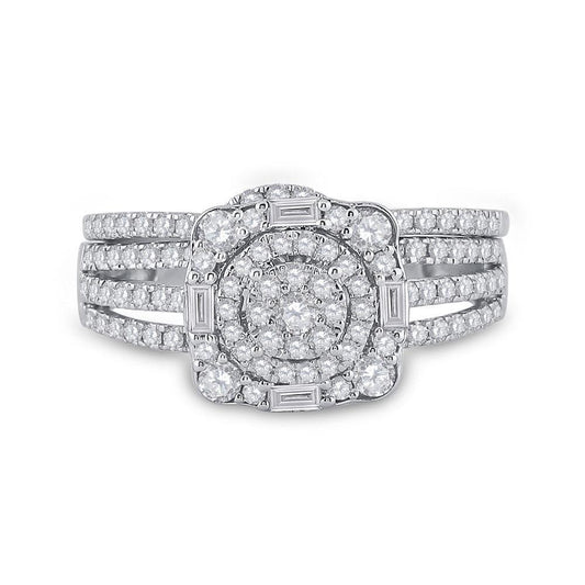 1.05Ctw Round Diamond Flower Cluster Bridal Wedding Ring Band Set 10k White Gold
