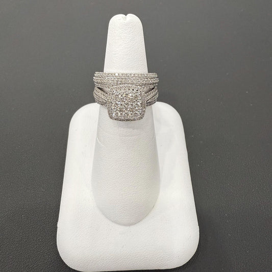 0.50 Cttw Diamond Square Cluster Bridal Wedding Ring Band Set 14k White Gold