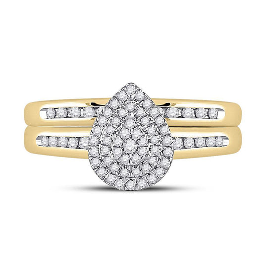 0.33 Cttw Diamond Pear Wedding Bridal Ring Band Set 10k Yellow Gold