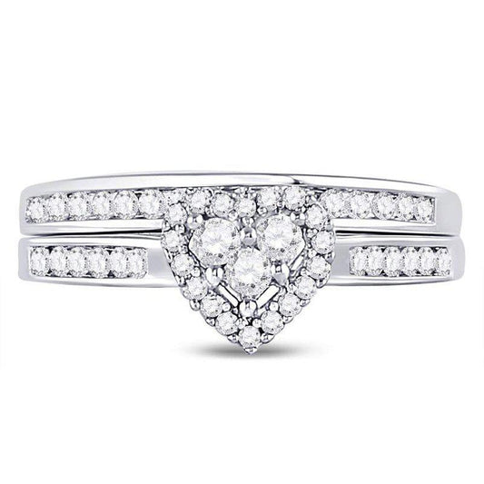 14kt White Gold Diamond Heart Bridal Wedding Ring Band Set 1/2 Cttw