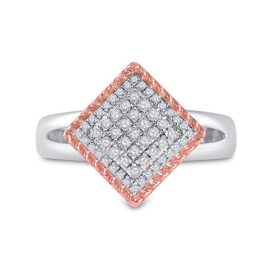 0.25ctw Diamond Square Top Womens Ring 10K Two Tone Gold Rope Border