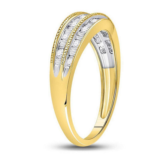 0.33cttw Baguette Diamond Crossover Wedding Band Ring 10k Yellow Gold Womens