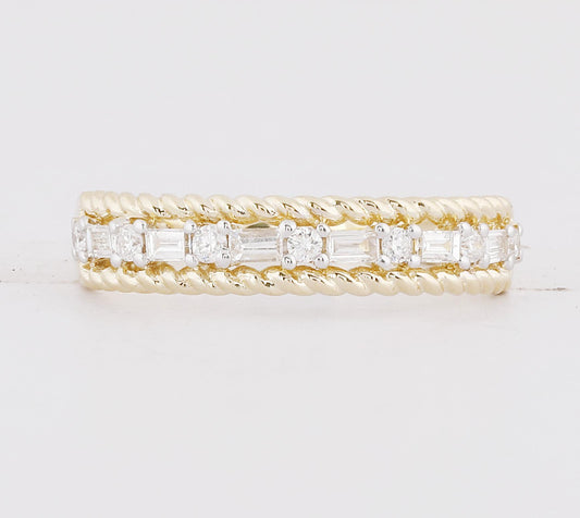 0.30ctw Baguette Diamond Womens Wedding Band Ring 14K Yellow Gold Rope Accent