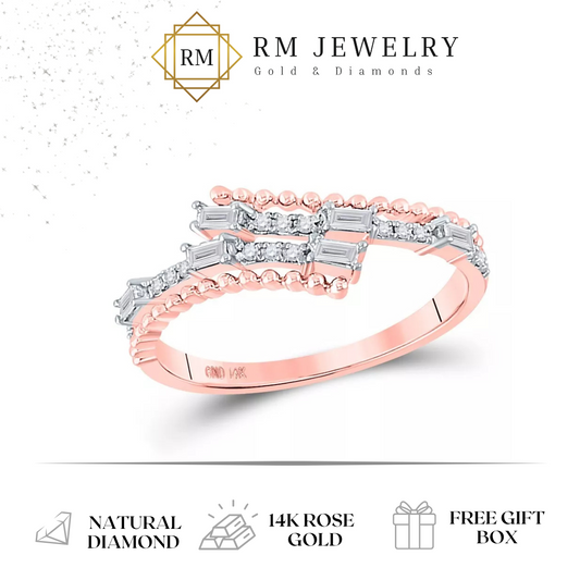 Baguette Diamond Bypass Ring Band 14k Rose Gold Womens