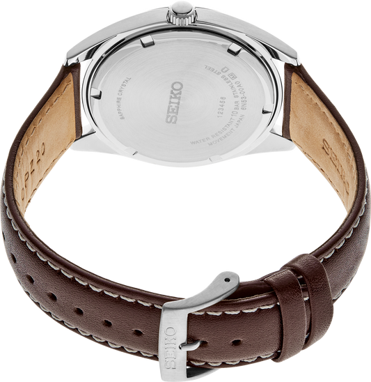 Seiko Essentials Mens Brown Leather Strap Watch SUR422