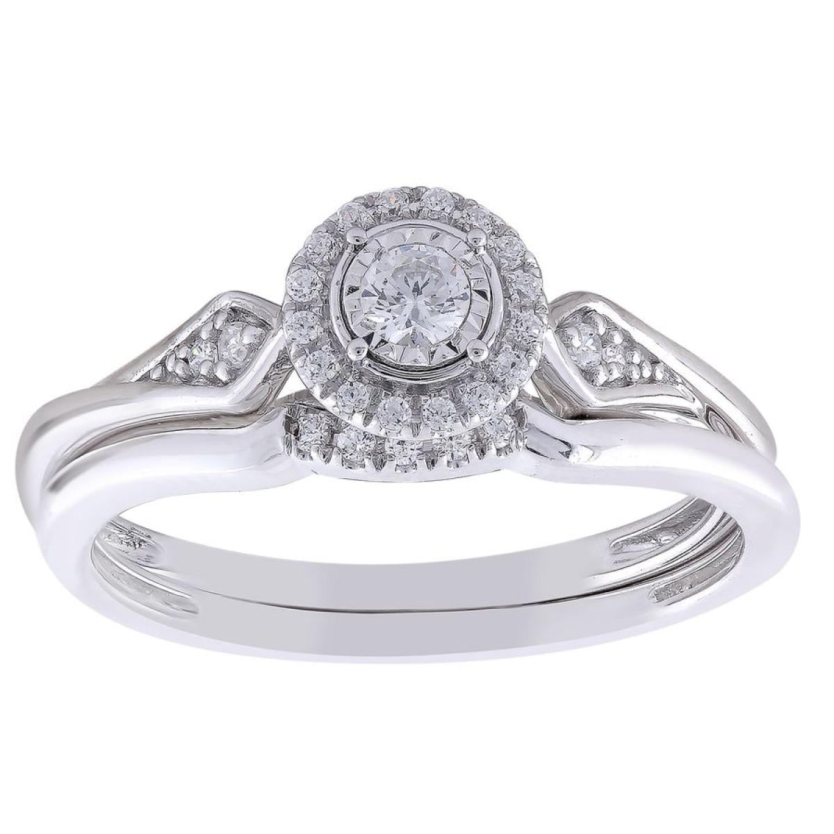 0.20ctw Diamond Round Cluster Bridal Wedding Ring Set 10k White Gold