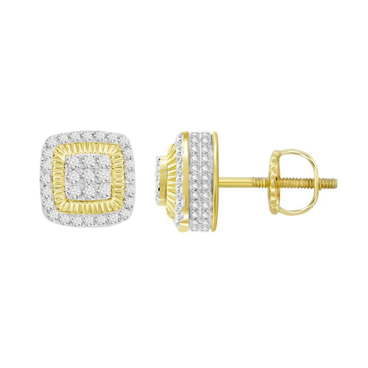 0.25ctw Diamond Square Cluster Stud Earrings 10k Yellow Gold Mens Screw Back