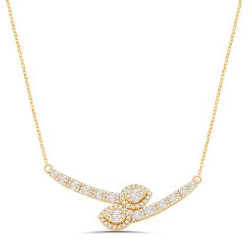 0.86ctw Diamond Baguette Pear Shape Necklace 10k Yellow Gold