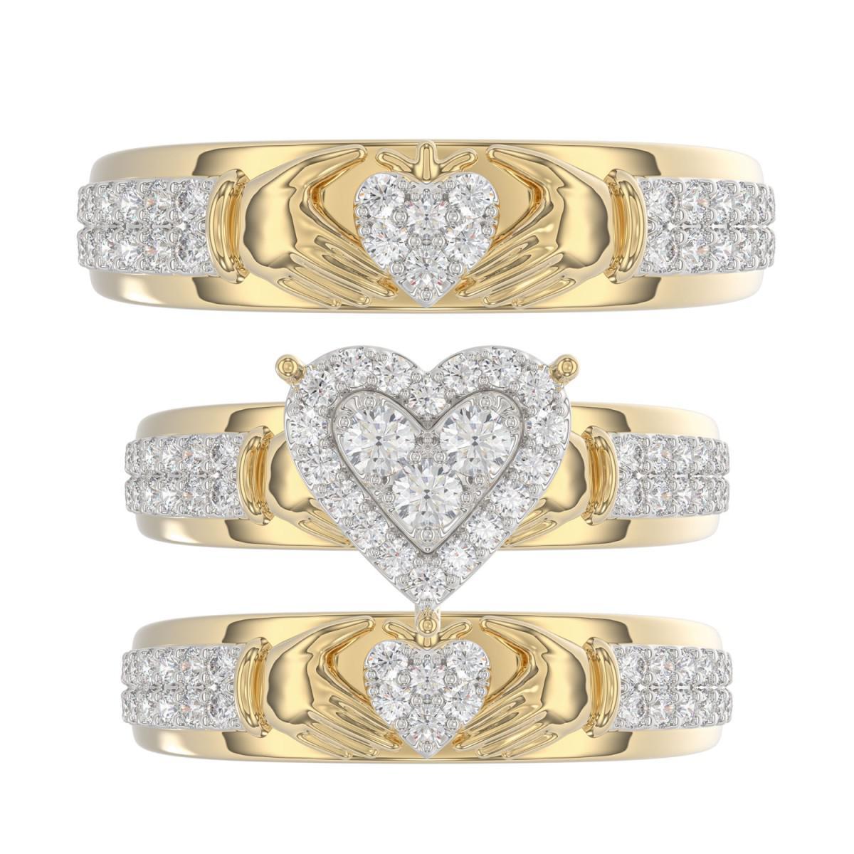 1.00ctw Diamond Wedding His Hers Ring Set 10k Yellow Gold Irish Claddagh