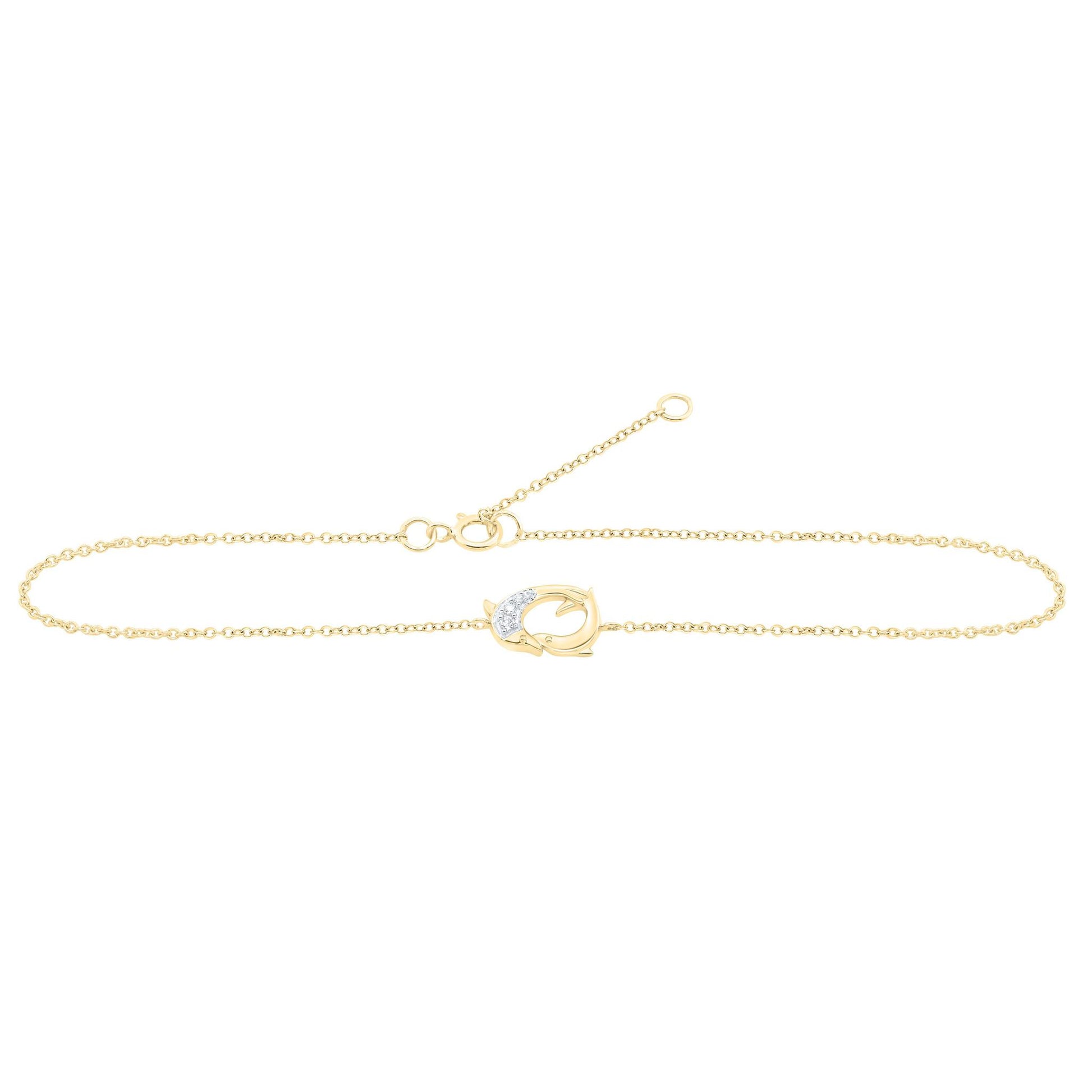 Diamond Two Dolphin Anklet Bracelet 10k Yellow Gold 9"