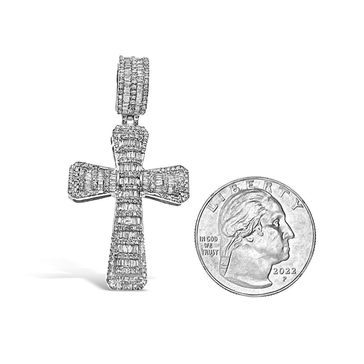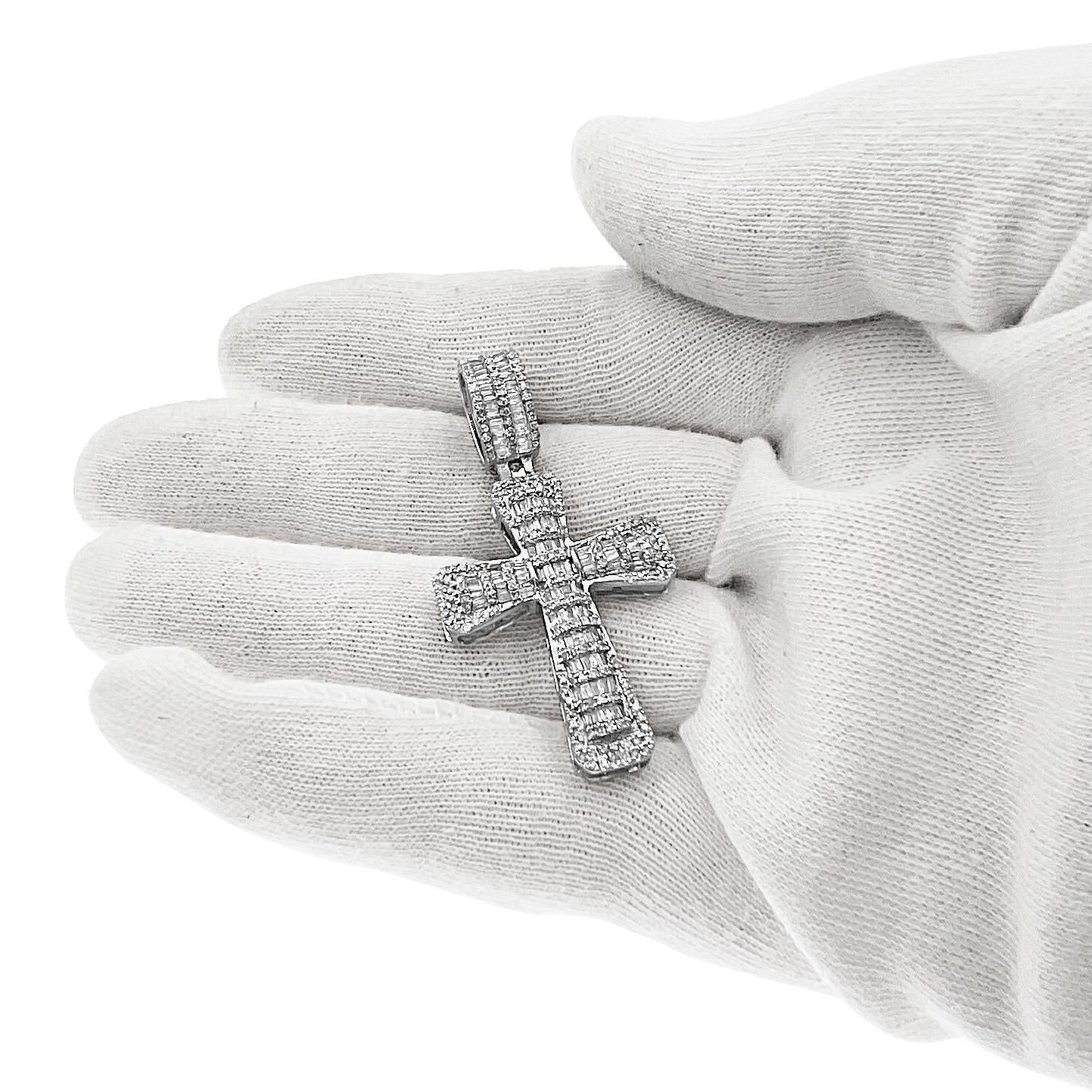 1.38 Cttw Baguette Round Diamond Cross Pendant Mens Charm 14k White Gold