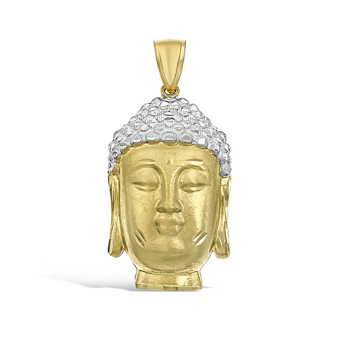 Buddha Head Charm Pendant 10k Yellow White Gold 1.9 inch