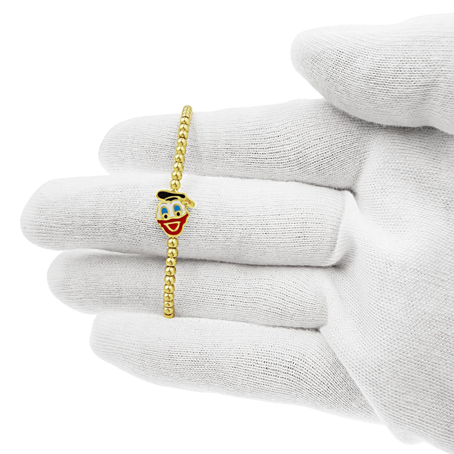Let your little one shine with this adorable Donald Duck kids bracelet, made from solid 10K yellow gold. Designed with a fun and colorful enamel charm on a high-polish 2.5mm beaded chain, this 6" bracelet is perfect for everyday wear or special occasions. It's lightweight, secure, and full of character!