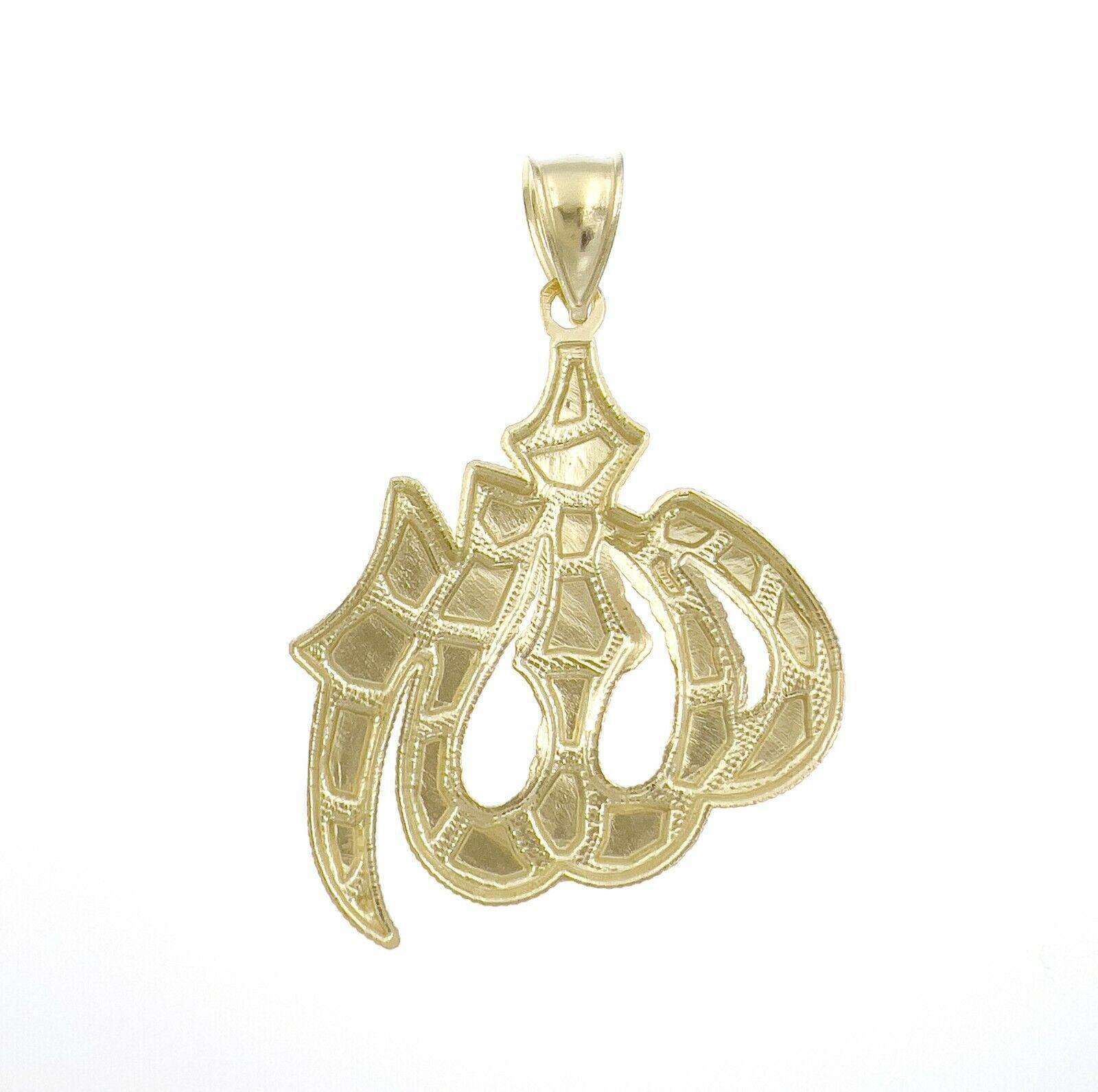 Allah Muslim Islam Pendant Mens Nugget Charm 10k Yellow Gold 2 inch