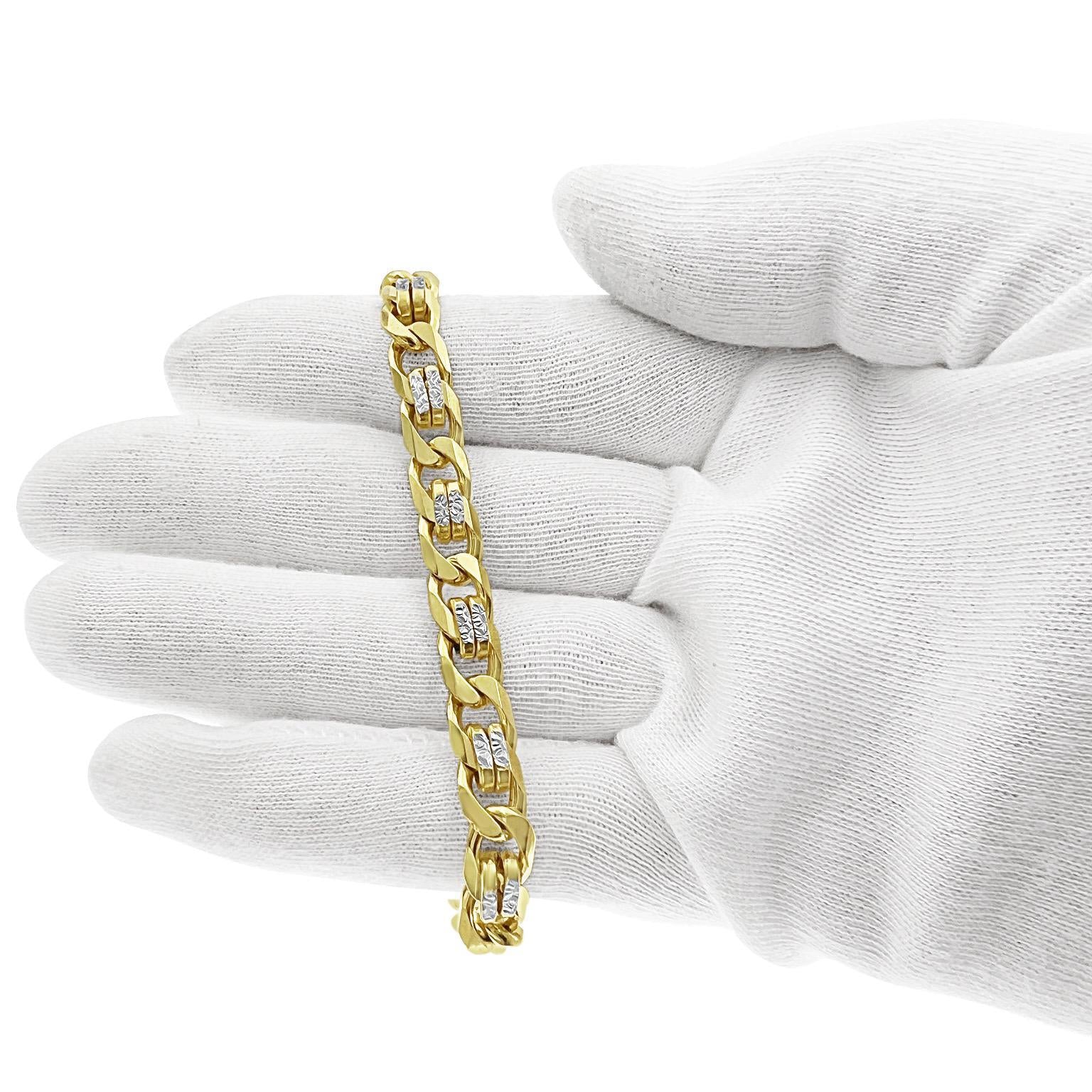 10k Yellow Gold Pave Cuban Curb Link Chain Mens Bracelet