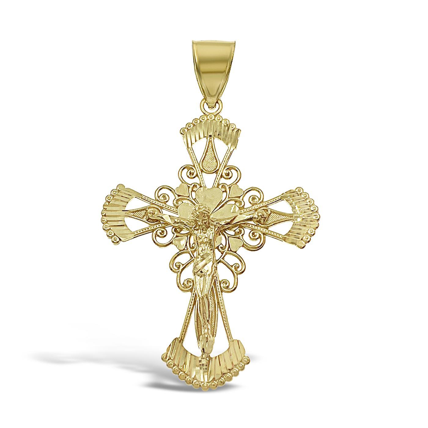 Cross Jesus Crucifix Pendant Real Solid 10k Yellow Gold Mens Charm 2.3 inch