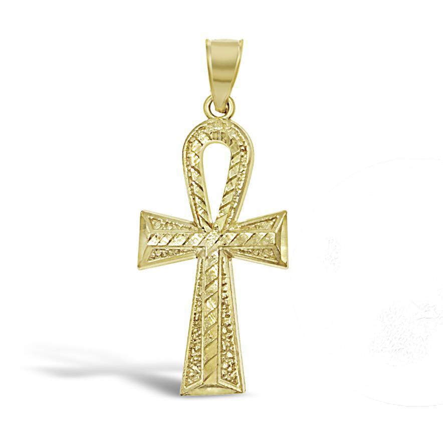 Ankh Cross Pendant 10K Yellow Gold Egyptian Religious Charm 1.4 inch