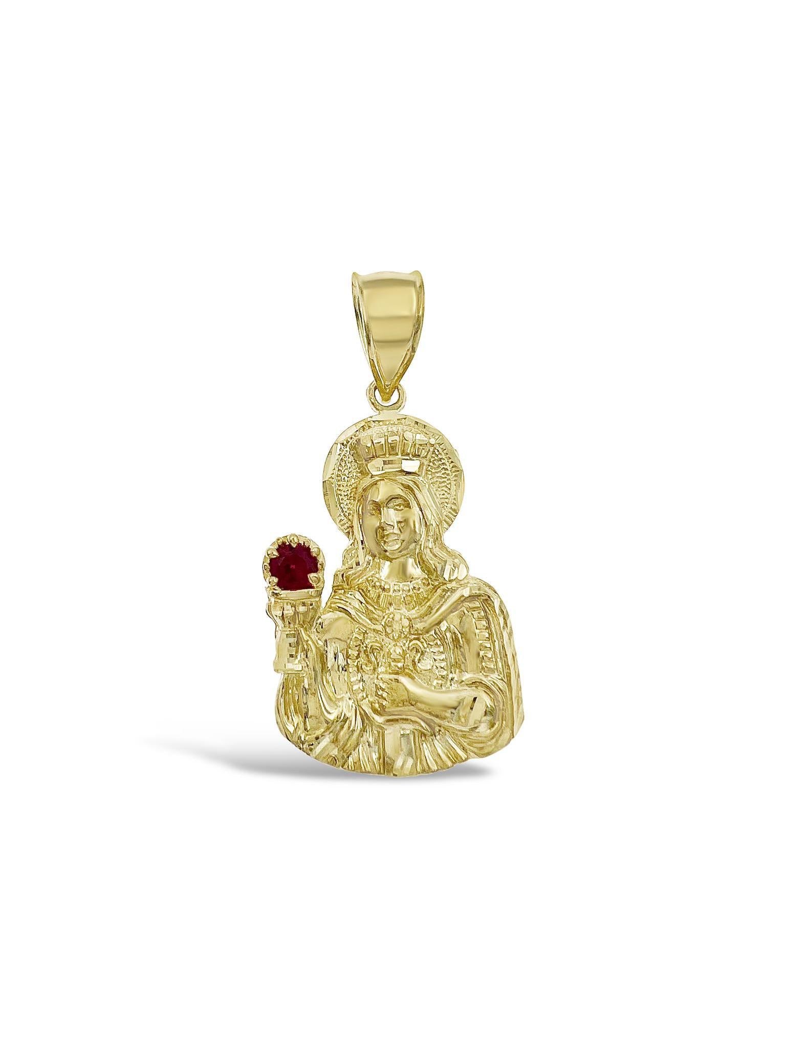 Saint Barbara Simulated Ruby Pendant Charm 10k Yellow Gold 2.1 inch Mens
