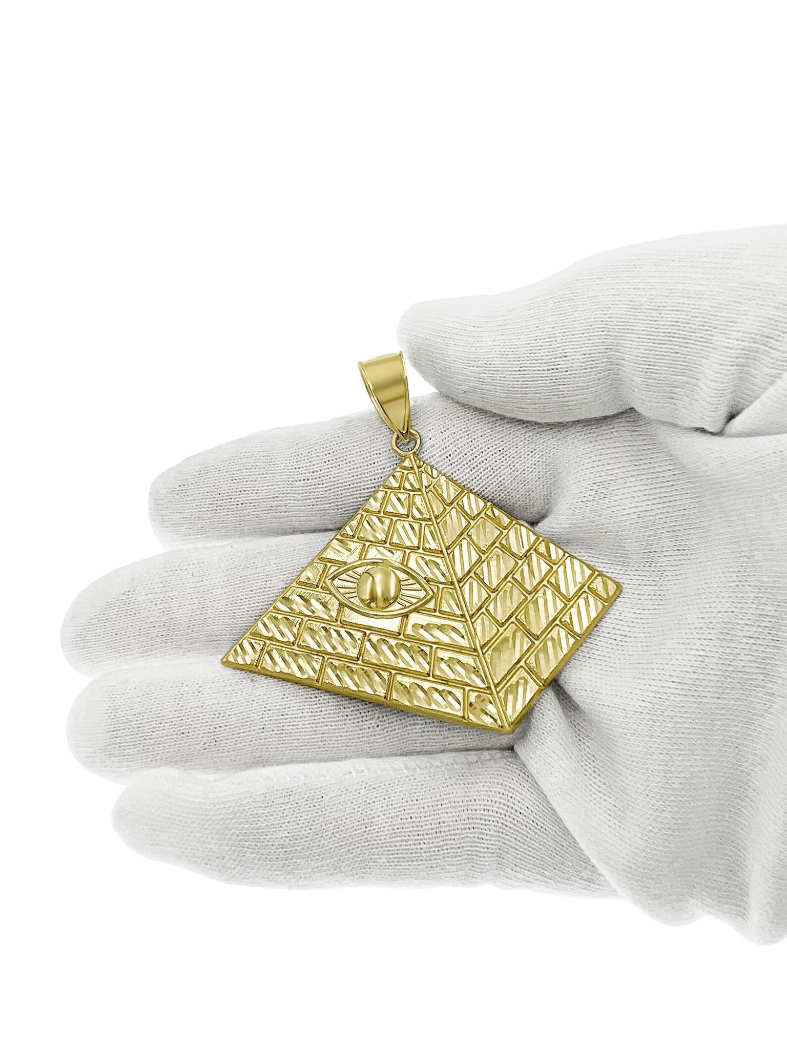 10k Gold Pyramid All-Seeing Eye Illuminati Pendant Egyptian Style Charm 2.3 inch