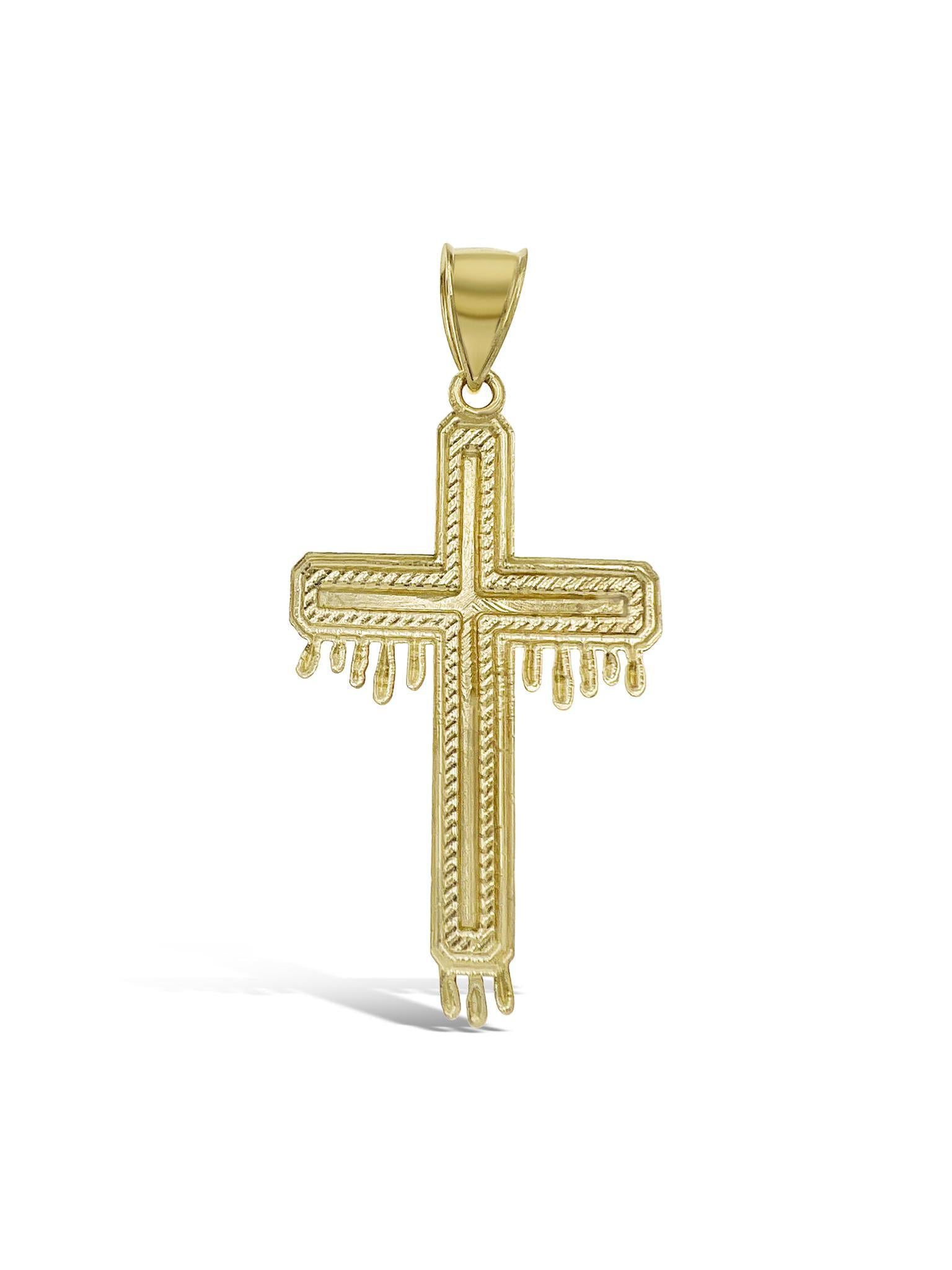 Cross Dripping Charm Mens Pendant 10k Yellow Gold