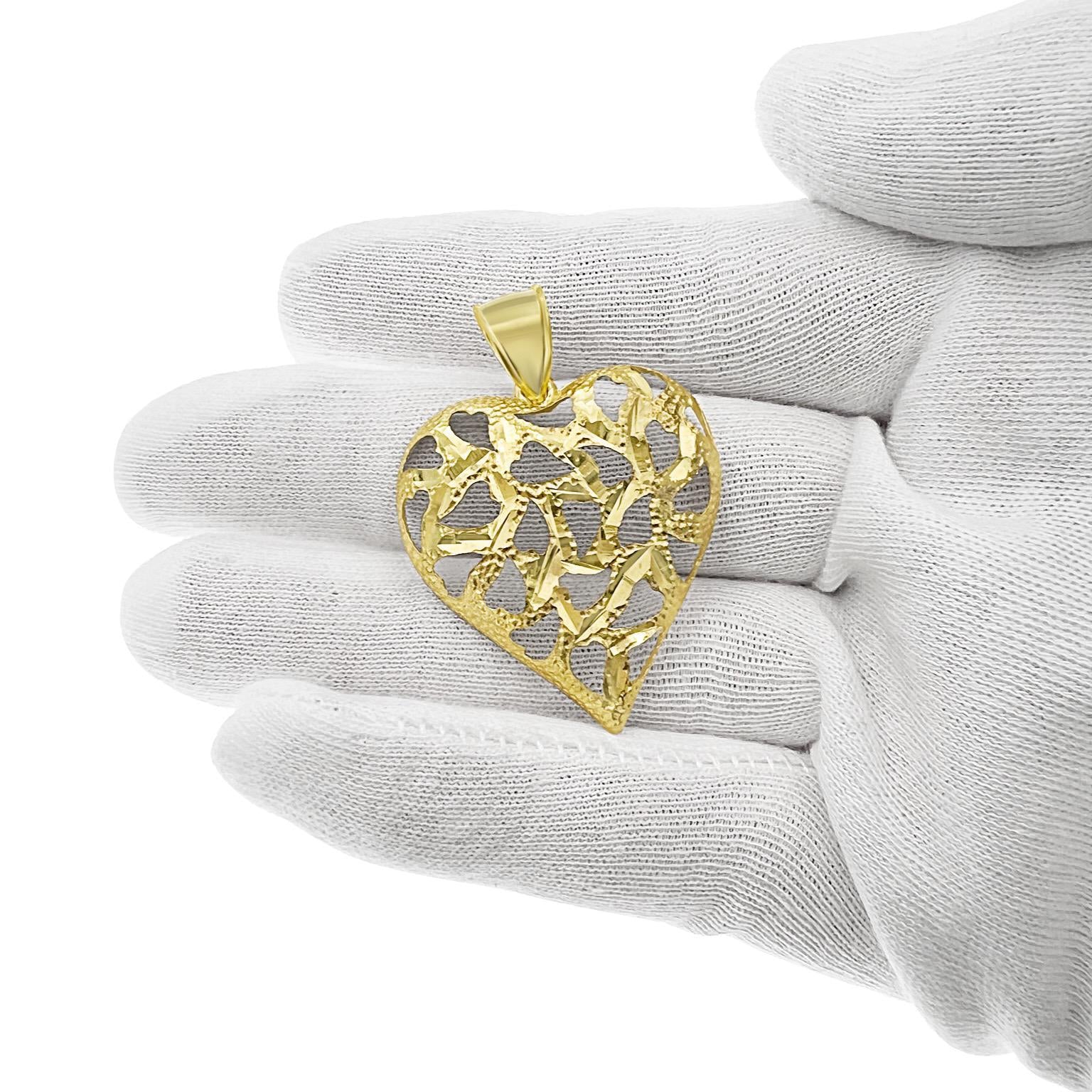 10k Yellow Gold Heart Love Charm Pendant 1.7 inch
