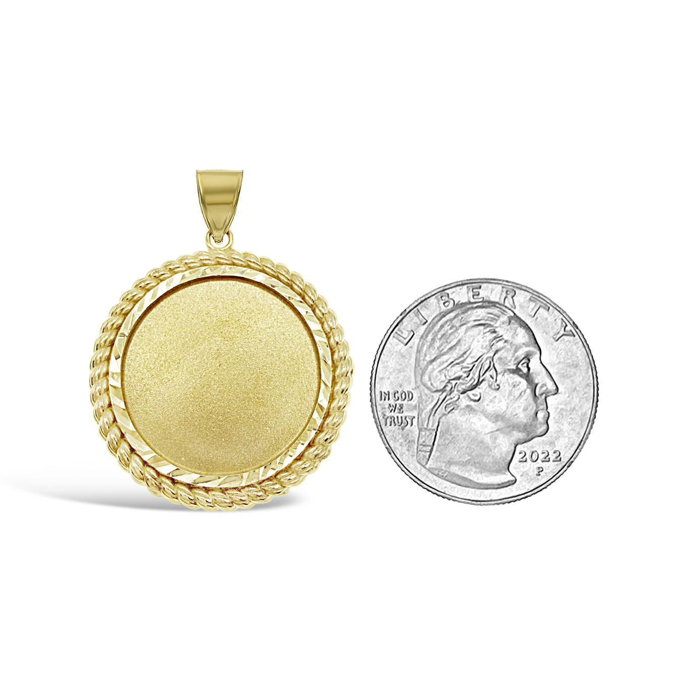 10K Yellow Gold Round Memory Picture Photo Frame Pendant Rope Bezel Charm