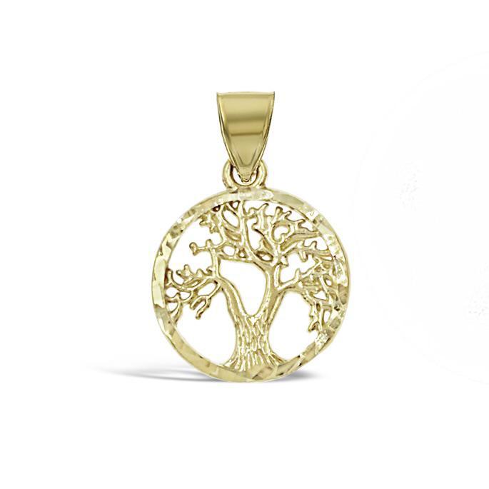 10K Yellow Gold Tree Of Life Pendant Round Charm 0.8 in