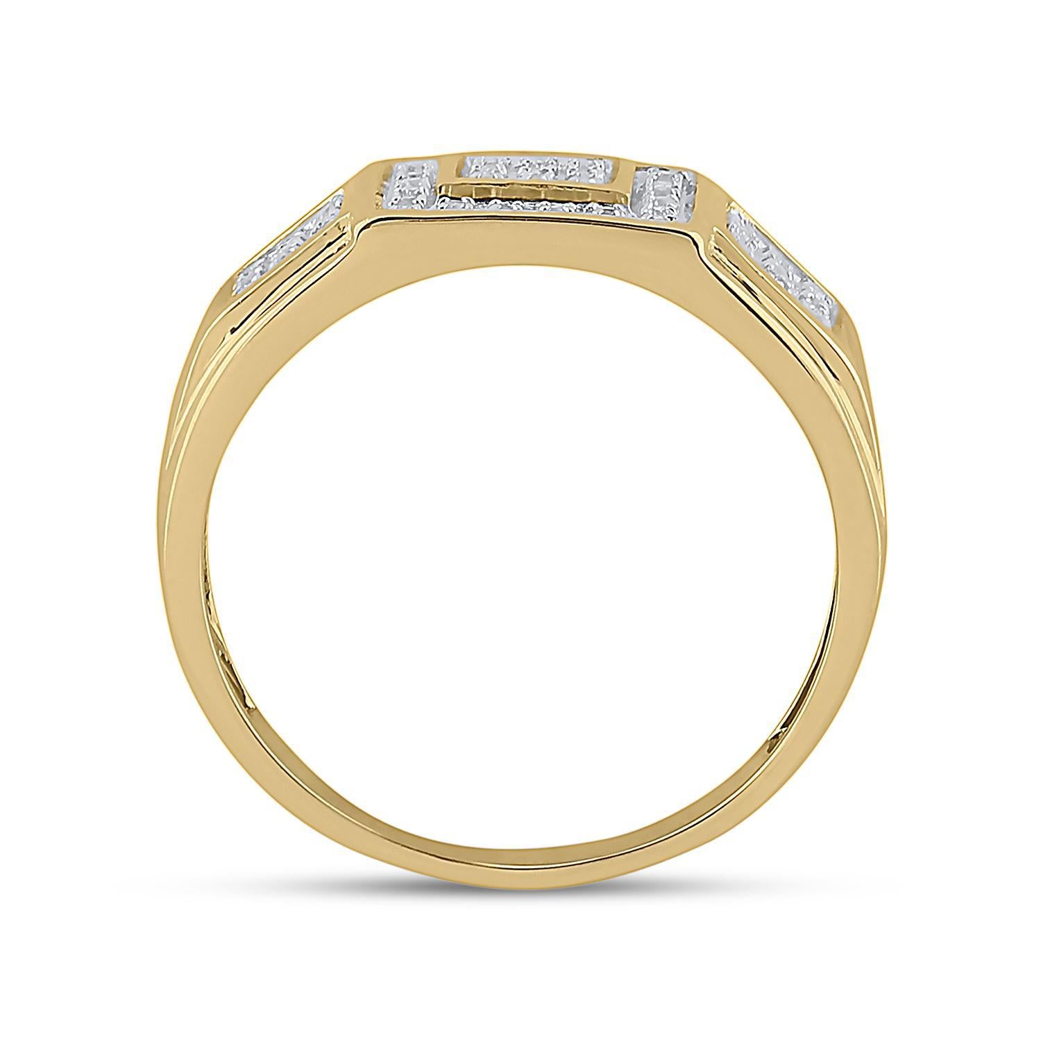 0.25 Cttw Round Diamond Square Mens Ring Band 10k Yellow Gold