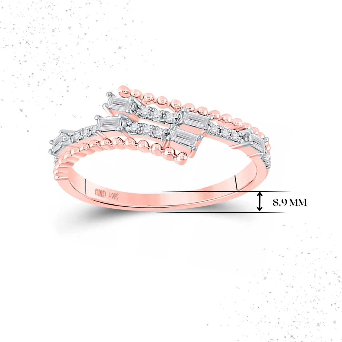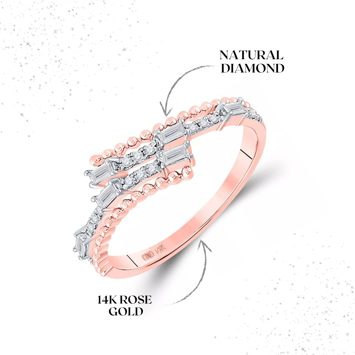 Baguette Diamond Bypass Ring Band 14k Rose Gold Womens