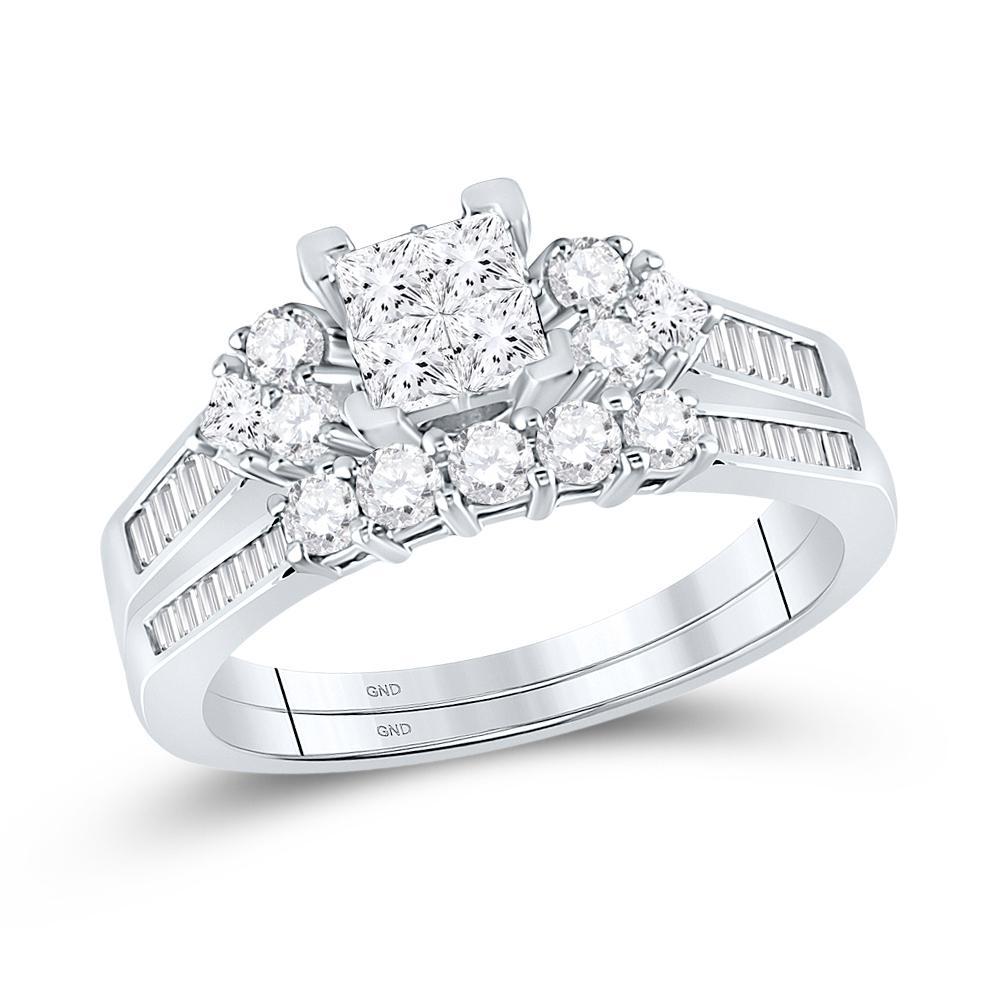 1.03Ctw Princess Baguette Diamond Bridal Wedding Ring Band Set 10k White Gold