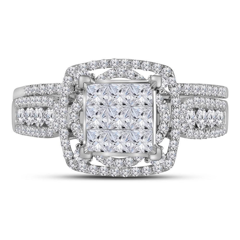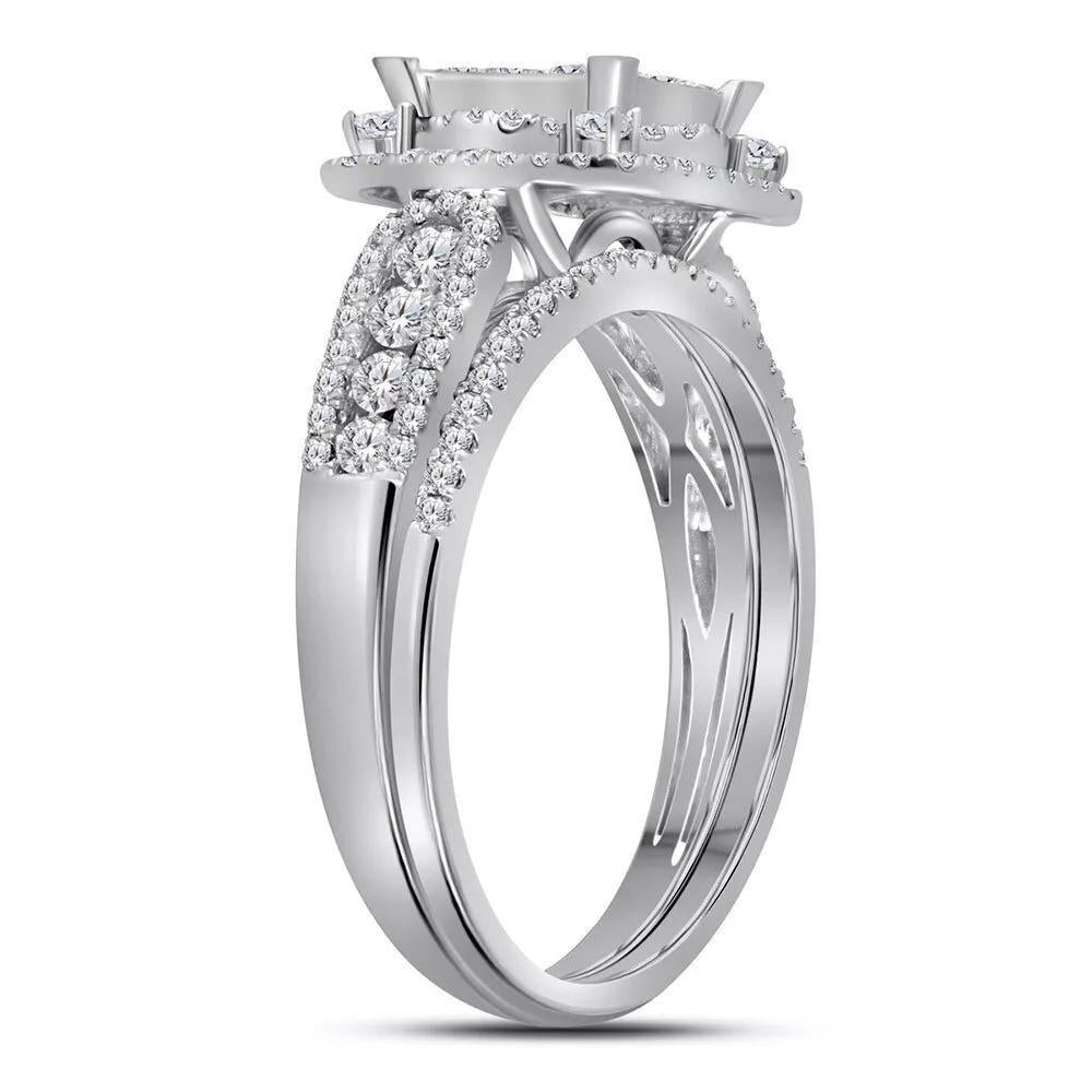 1.05Ctw Diamond Square Bridal Engagement Wedding Ring Band Set 14k White Gold