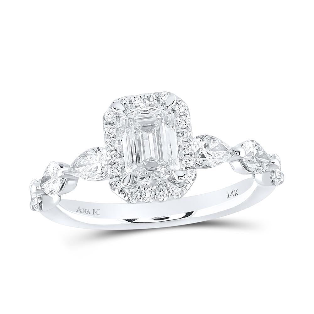 2.00ctw Emerald Diamond Halo Bridal Engagement Ring 14k White Gold