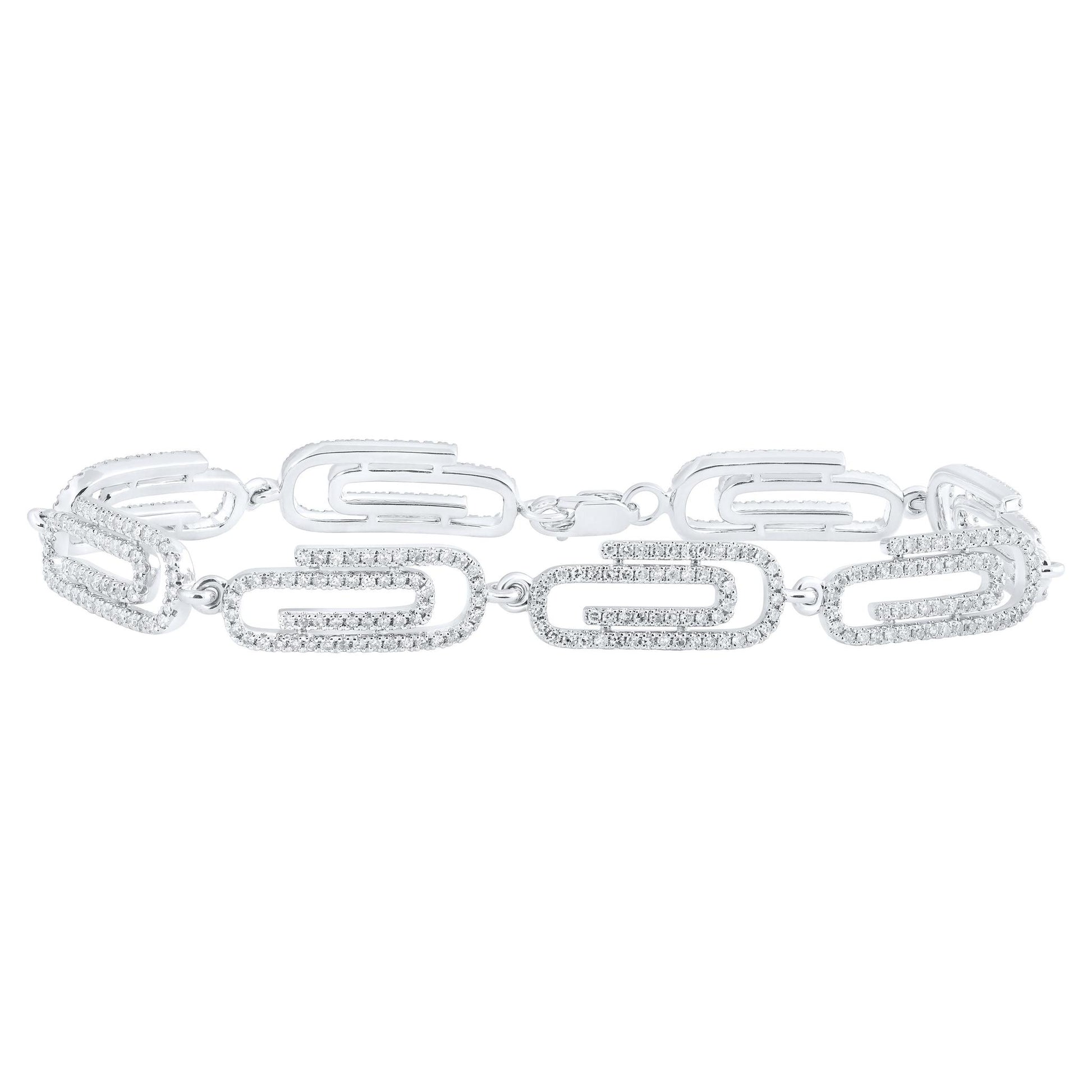 1.90ctw Diamond Paper Clip Bracelet 14k White Gold