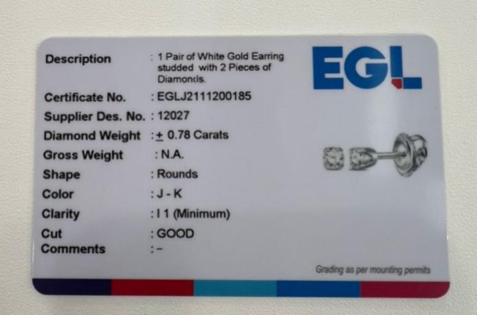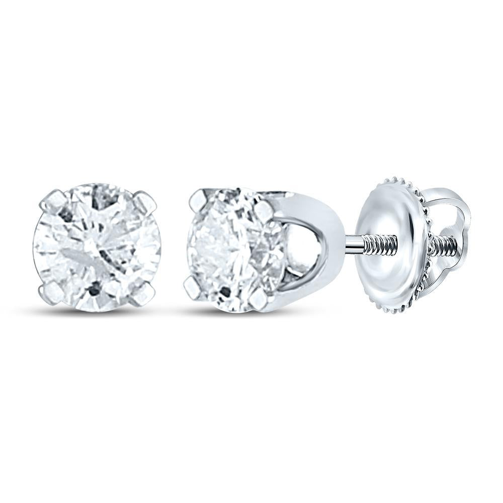 0.80ctw Round Natural Diamond Solitaire Stud Earrings 14k White Gold
