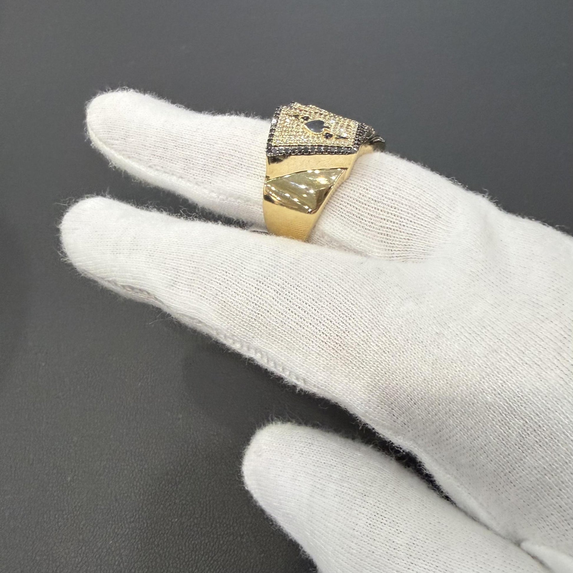 0.75ctw Diamond Ace Spades Mens Ring 10k Yellow Gold