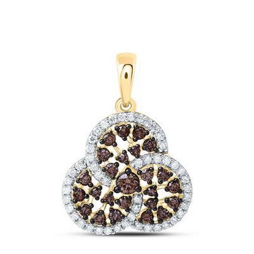 0.62ctw Cognac Diamond Trinity Womens Charm Pendant 10k Yellow Gold