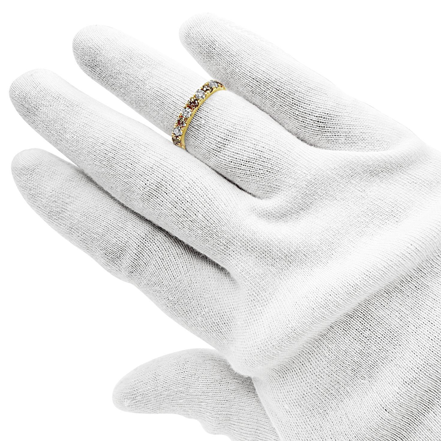 0.87ctw Cognac Diamond Womens Wedding Anniversary Band Ring 14k Yellow Gold