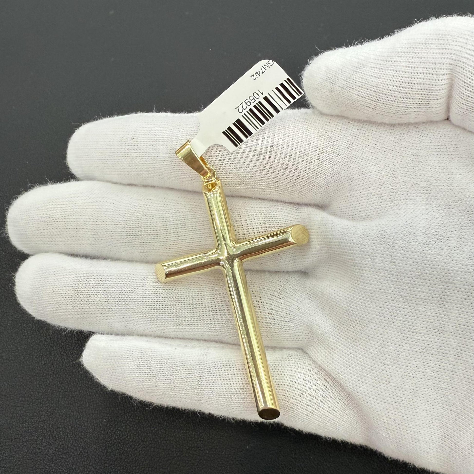 Cross Plain Pendant Charm 925 Sterling Silver Gold Plated 2.6 inch