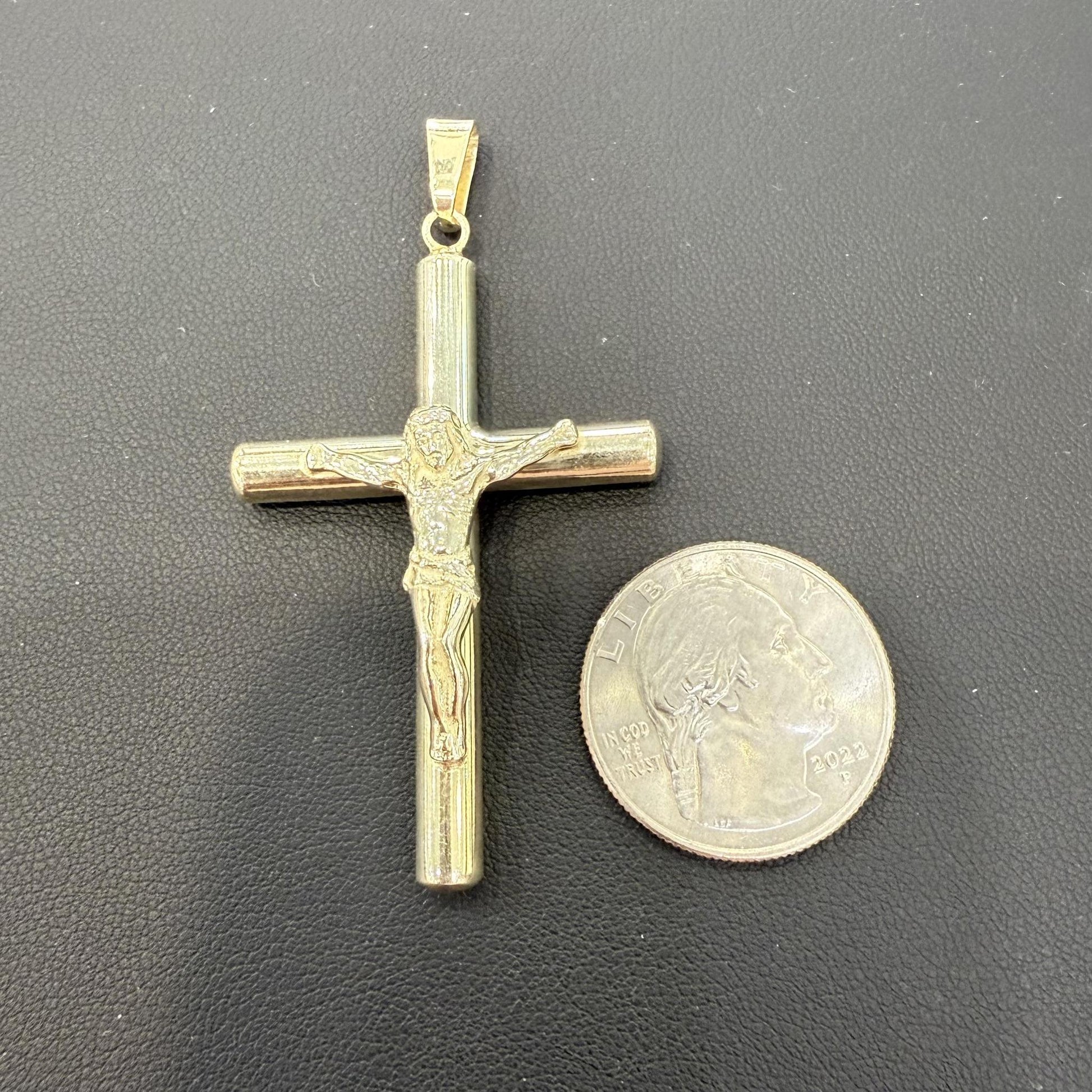 Cross Crucifix Pendant Charm 925 Sterling Silver Gold Plated 2.5"